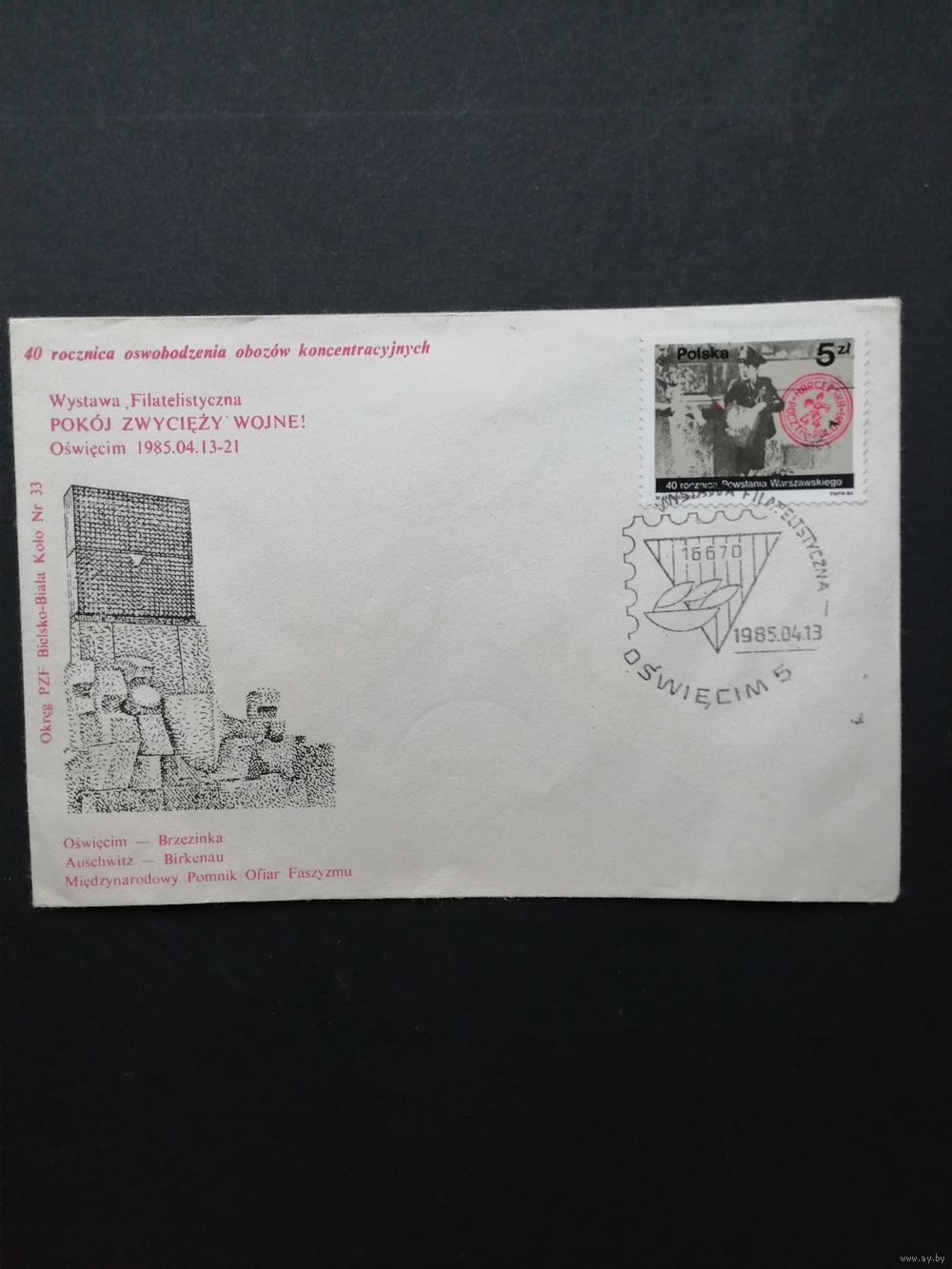 Польша 1984 Конверт посвященный 40-летию освобождения концентрационных лагерей и филателистической выставке в Освенциме с маркой из серии "40 лет восстанию в Варшаве 1944 года" (спецгашение) Mi.2931