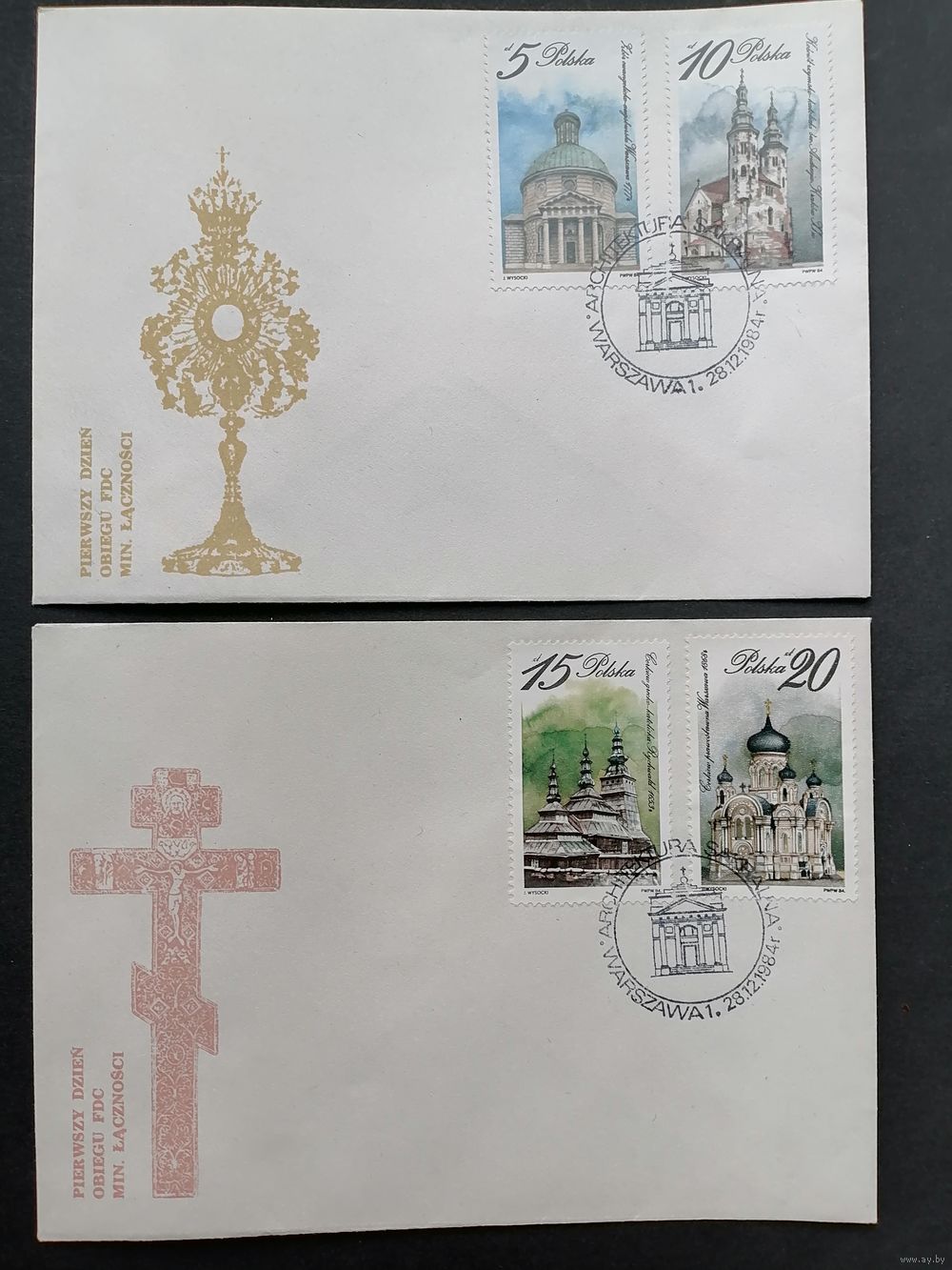 Польша 1984 Три КПД с полной серией марок "Храмы Польши" (спецгашение) Mi.2954-2959 каталог 3.50 евро