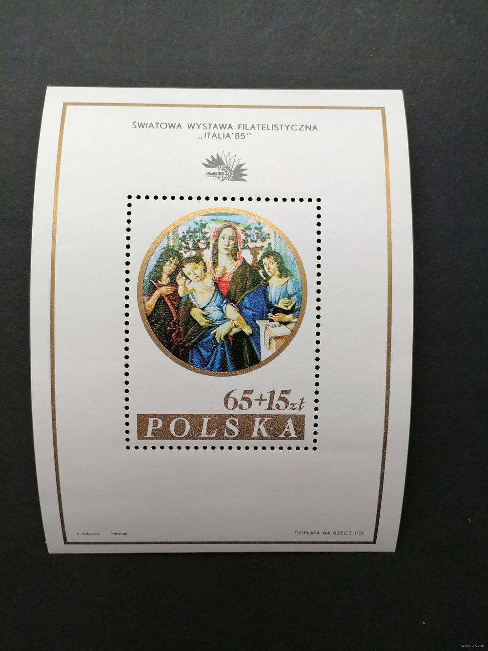 Польша 1985 Блок Mi.96 тип I с маркой "Международная филателистическая выставка "ITALIA-85"" (чистый**) Mi.2997 каталог 3.60 евро