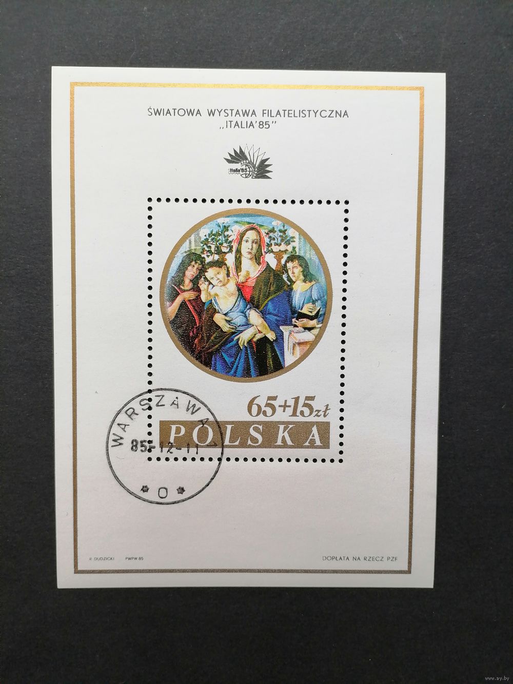 Польша 1985 Блок Mi.96 тип I с маркой "Международная филателистическая выставка "ITALIA-85"" (гашение с клеем) Mi.2997 каталог 3.00 евро