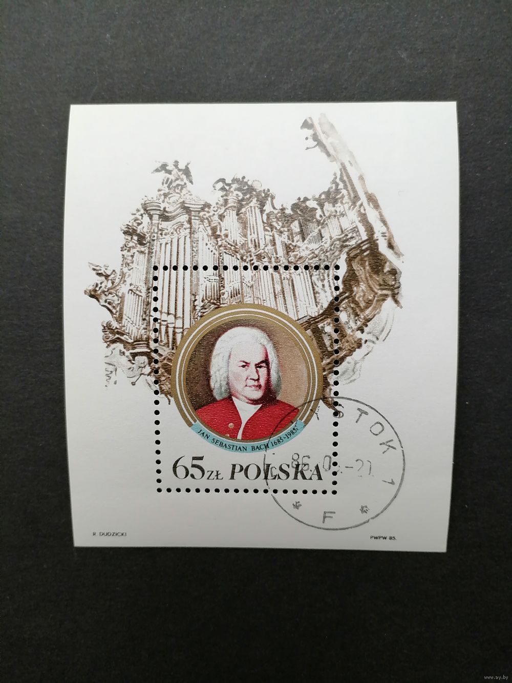 Польша 1985 Блок Mi.97 тип I c маркой "300 лет со дня рождения Иоганна Себастьяна Баха (гашение с клеем) Mi.3012 каталог 2.00 евро