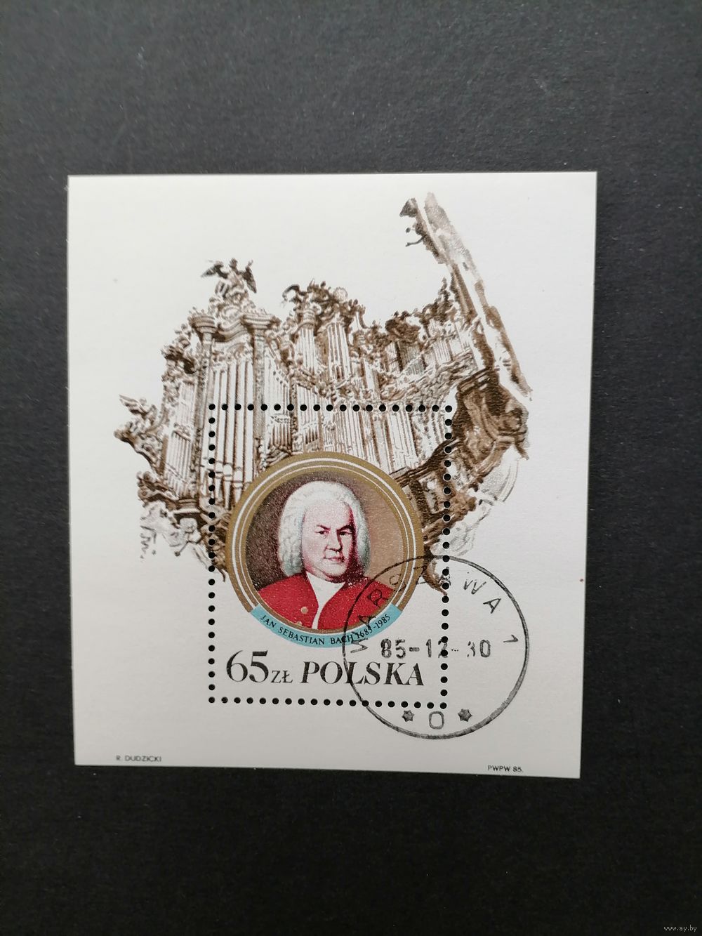 Польша 1985 Блок Mi.97 тип I c маркой "300 лет со дня рождения Иоганна Себастьяна Баха (гашение с клеем) Mi.3012 каталог 2.00 евро