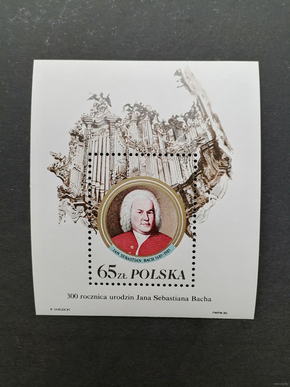 Польша 1985 Блок Mi.97 тип II c надпечаткой внизу "300 со дня рождения И.С.Баха" и маркой "300 лет со дня рождения Иоганна Себастьяна Баха (чистый**) Mi.3012 каталог 12.00 евро
