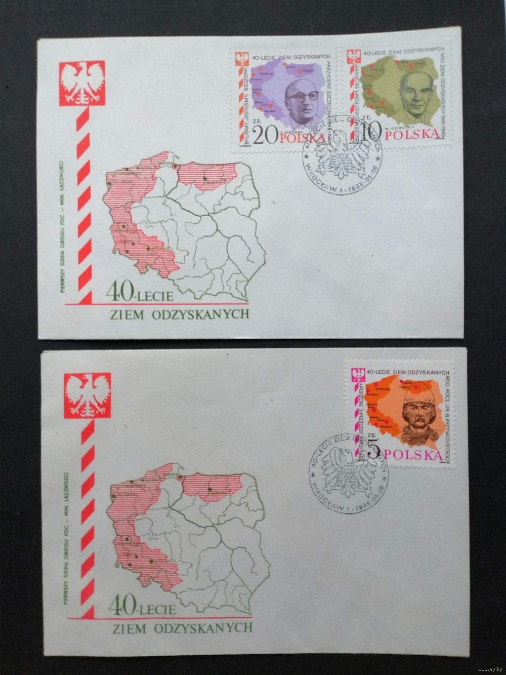 Польша 1985 Два КПД с полной серией марок "40 лет объединения с Польшей северных и западных земель" (спецгашение) Mi.2970-2972 каталог 2.00 евро