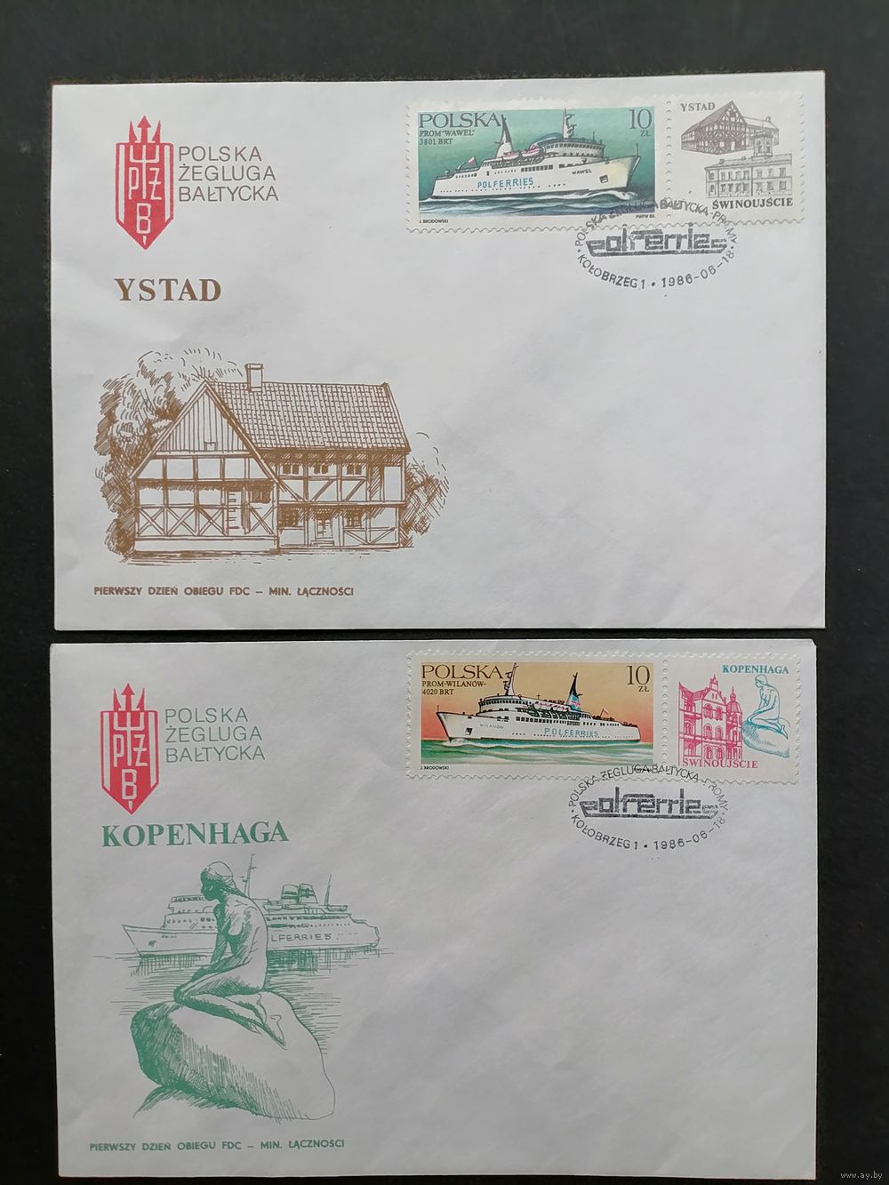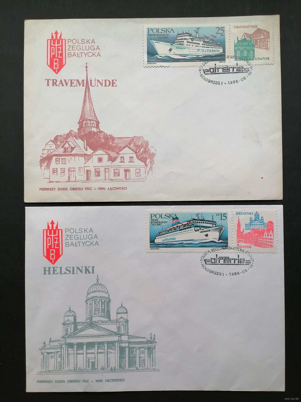 Польша 1986 Четыре КПД с полной серией марок "Польские круизы по Балтийскому морю" (спецгашение) Mi.3029-3032 каталог 5.10 евро