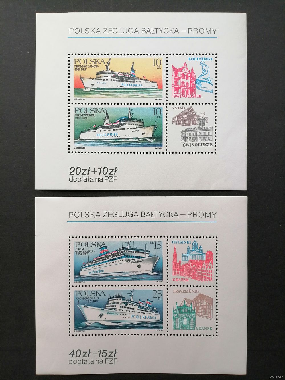 Польша 1986 Два блока Mi.98 и Mi.99 с марками "Польские круизы по Балтийскому морю" (чистые**) Mi.3029-3032 каталог 12.50 евро