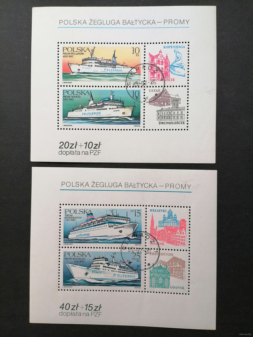 Польша 1986 Два блока Mi.98 и Mi.99 с марками "Польские круизы по Балтийскому морю" (гашение с клеем) Mi.3029-3032 каталог 9.00 евро