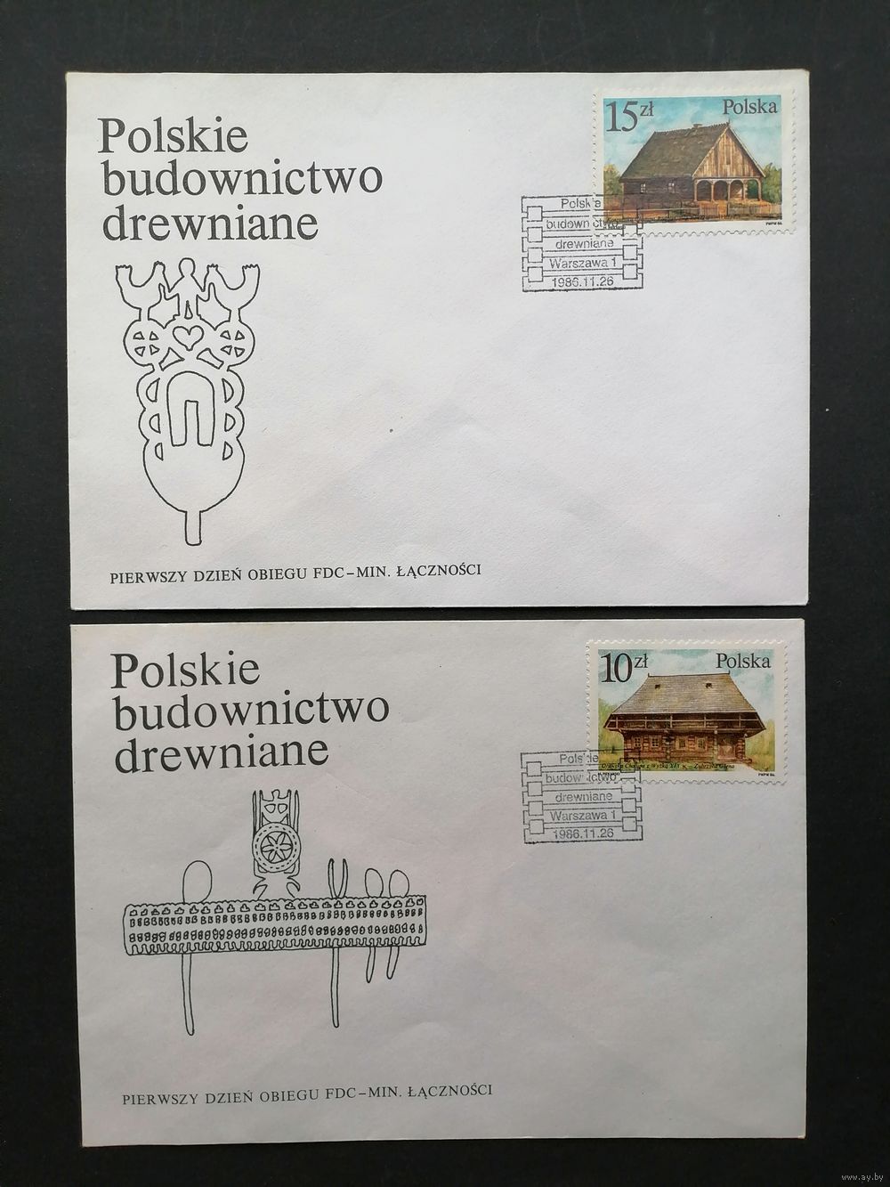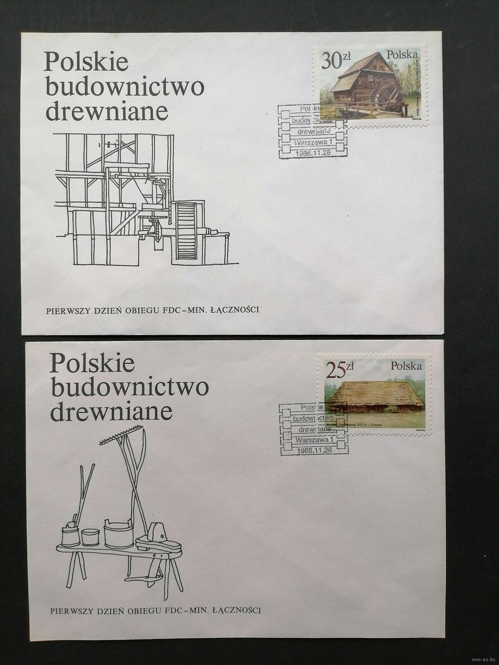 Польша 1986 Шесть КПД с полной серией марок "Архитектурные памятники деревянного строительства Польши" (спецгашение) Mi.3060-3065 каталог 3.50 евро