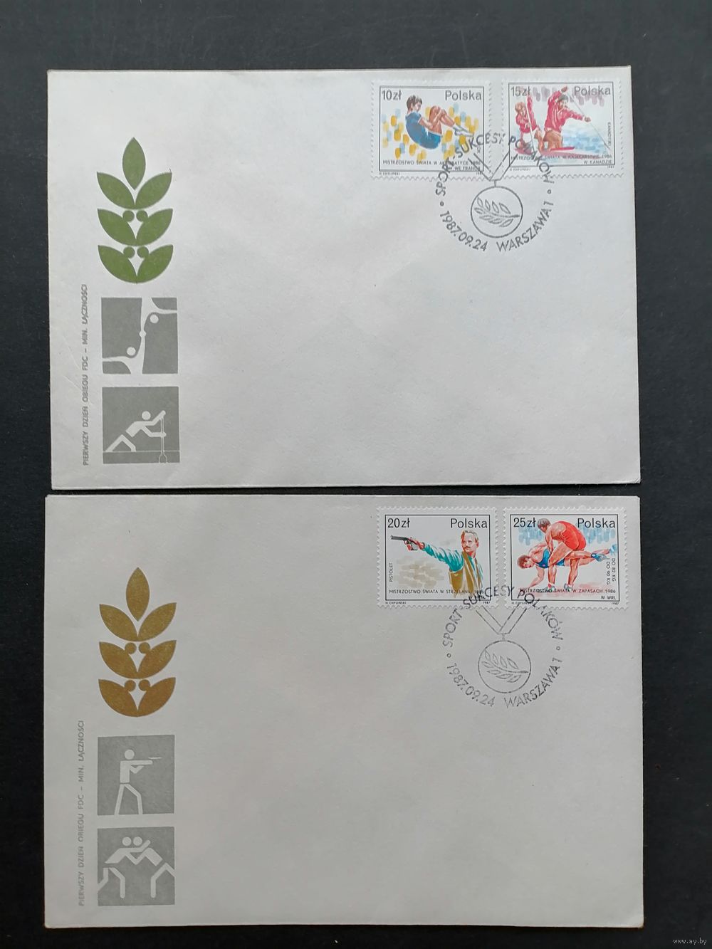 Польша 1987 Два КПД с полной серией марок "Достижения польских спортсменов на разных чемпионатах мира 1986 года" (спецгашение) Mi.3118-3121 каталог 1.80 евро
