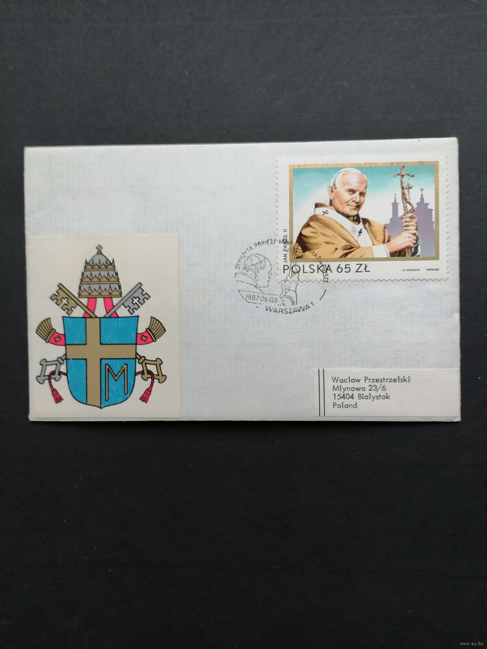 Польша 1987 Конверт с маркой 1983 года "II визит Папы Павла II в Польшу" (спецгашение 1987 года) Mi.2869