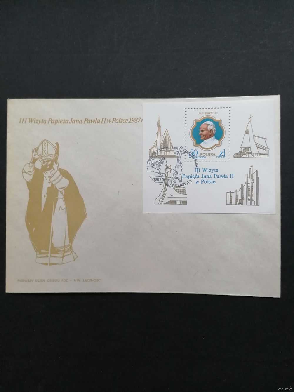 Польша 1987 КПД с блоком Mi.103 и маркой "III визит Папы Римского Иоанна Павла II в Польшу" (спецгашение) Mi.3101 каталог 1.20 евро