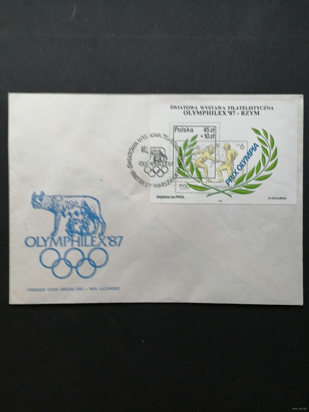 Польша 1987 КПД с блоком Mi.104 и маркой "Международная филателистическая выставка "OLYMPHILEX-87" в Риме" (спецгашение) Mi.3112 каталог 1.50 евро