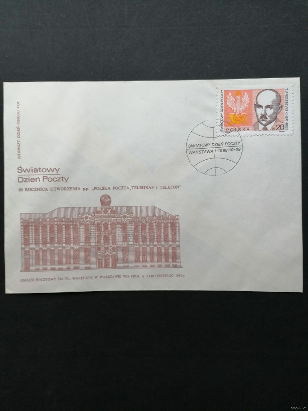 Польша 1988 КПД с маркой "Всемирный день почты" (спецгашение) Mi.3163 каталог 0.50 евро
