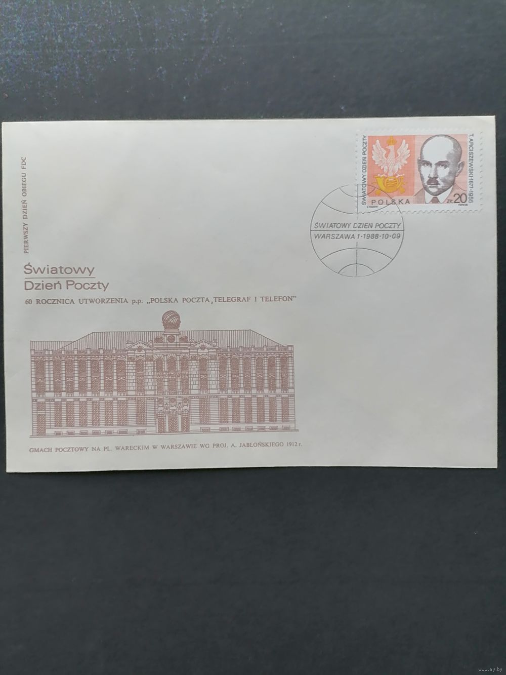 Польша 1988 КПД с маркой "Всемирный день почты" (спецгашение) Mi.3163 каталог 0.50 евро