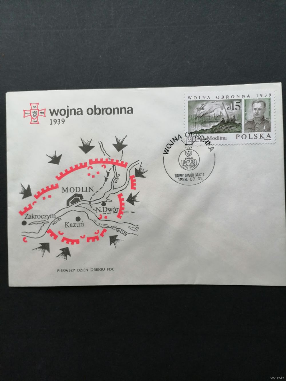 Польша 1988 Три КПД с полной серией марок "49-ая годовщина начала Второй мировой войны (оборонной войны Польши): оборонные сражения" (спецгашение) Mi.3159-3161 каталог 1.00 евро