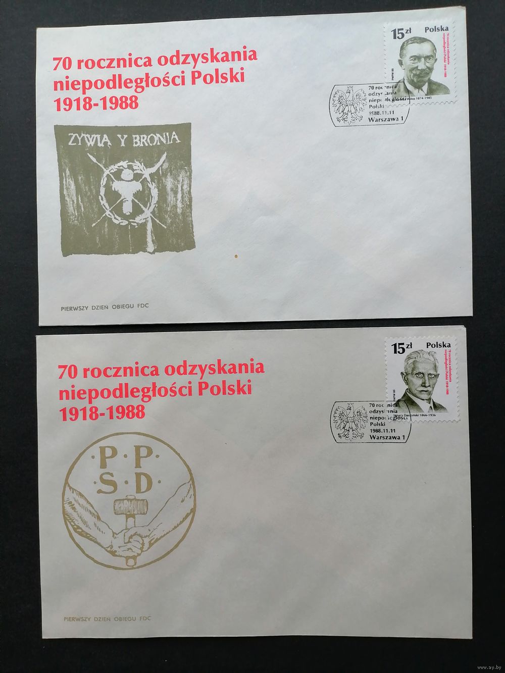 Польша 1988 Восемь КПД с полной серией марок "70 лет со дня обретения независимости Польской Республики" (спецгашение) Mi.3169-3176 каталог 7.50 евро