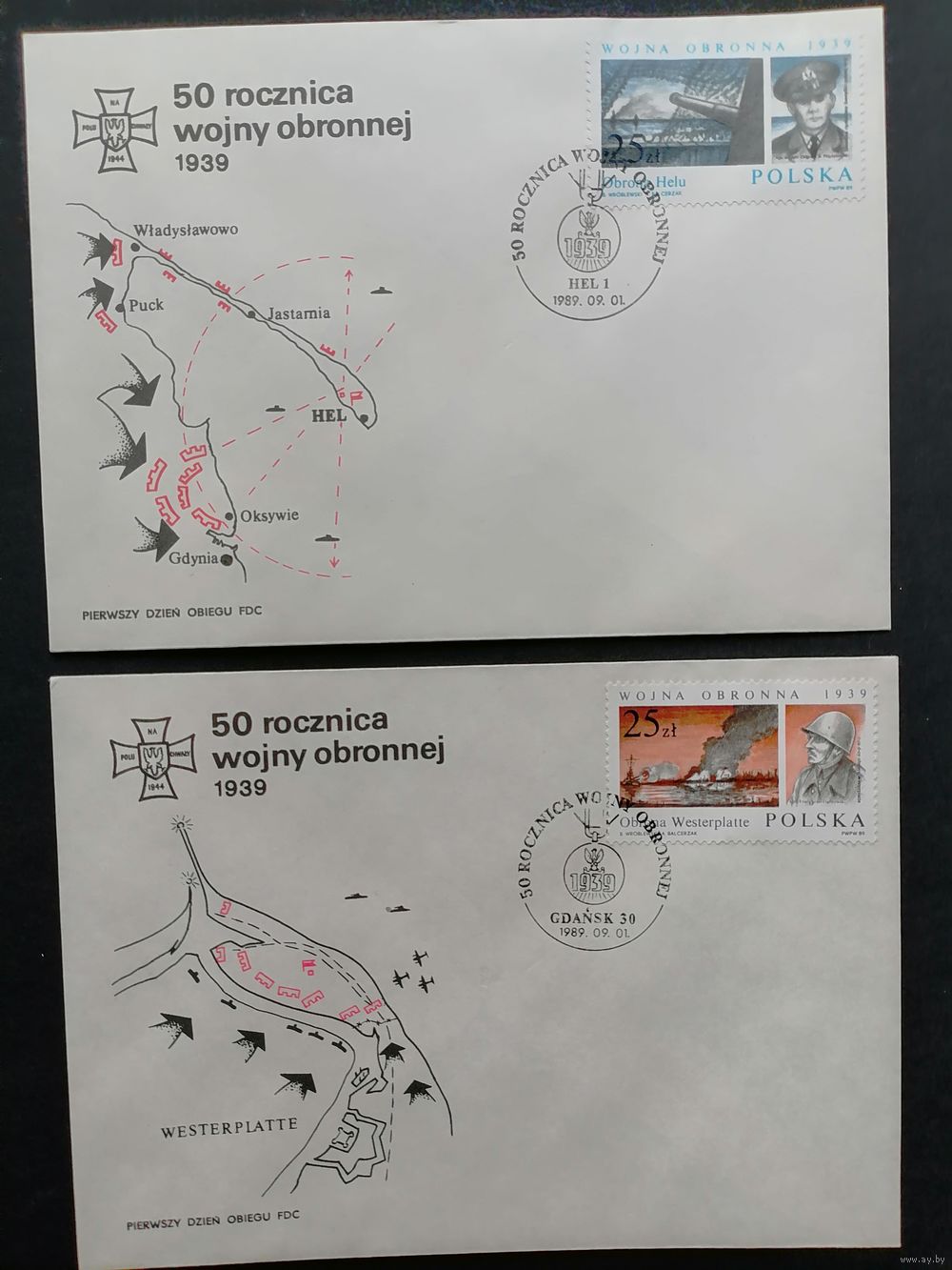 Польша 1989 Четыре КПД с полной серией марок "50-ая годовщина начала Второй мировой войны (оборонной войны Польши): оборонные сражения" (спецгашение) Mi.3216-3219 каталог 1.50 евро