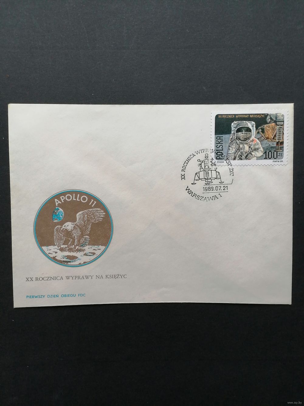 Польша 1989 КПД с маркой "20 лет первой пилотируемой посадке на Луну" (спецгашение) Mi.3206 I А каталог 1.00 евро