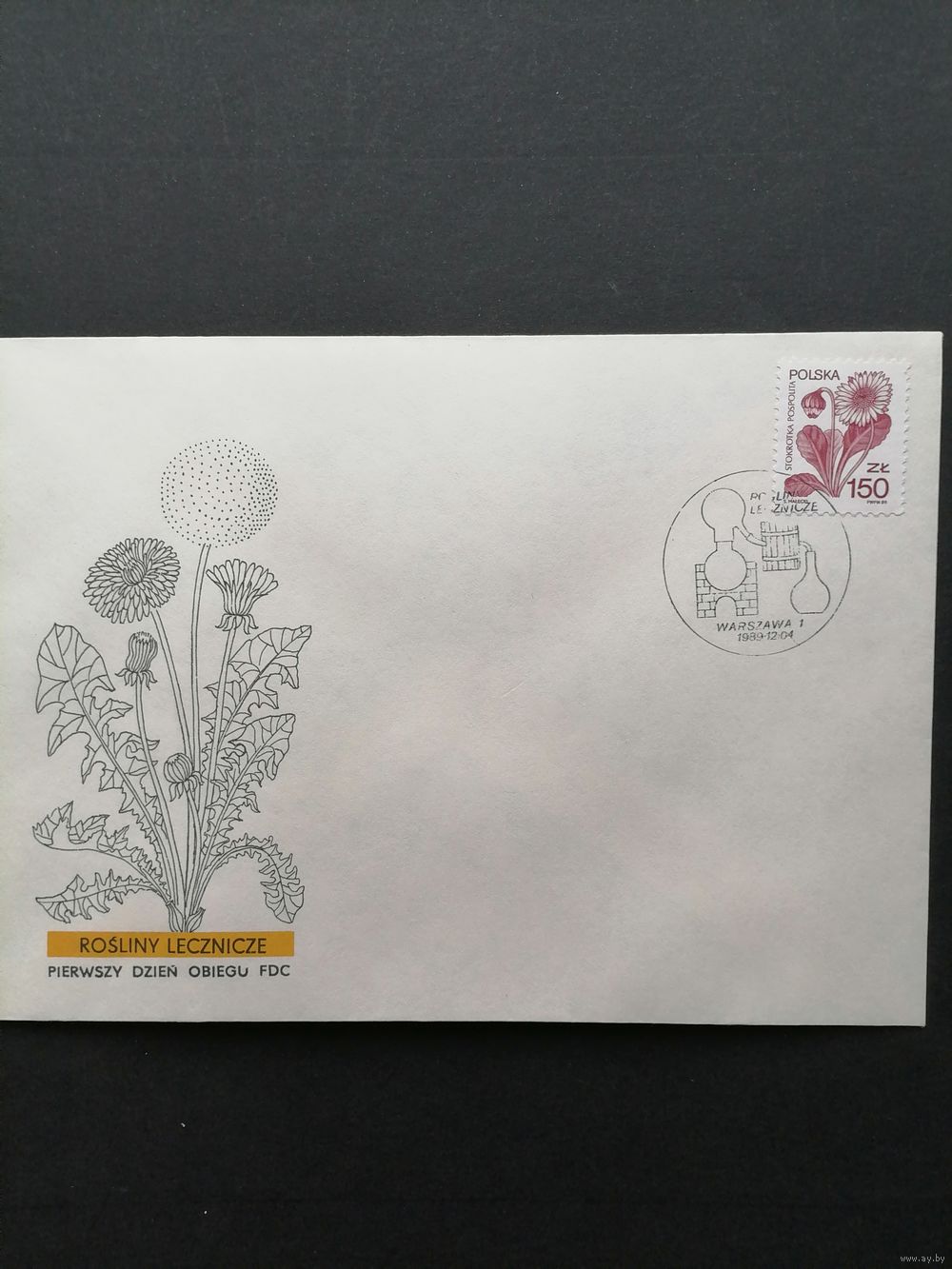 Польша 1989 КПД с маркой "Лекарственные растения" (спецгашение) Mi.3235 каталог 0.70 евро