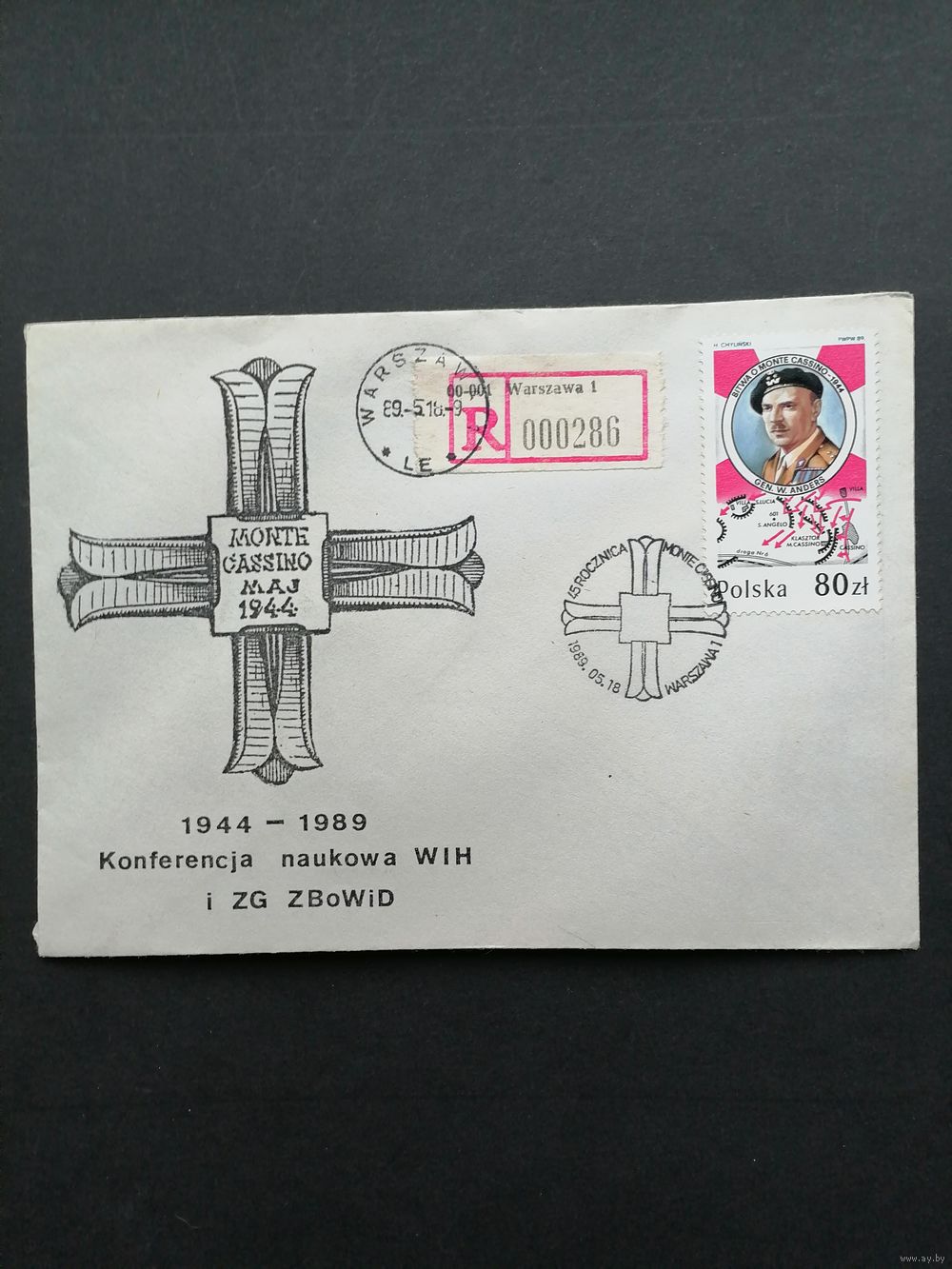 Польша 1989 КПД с маркой "Участие польских войск в сражениях Второй мировой войны: битва под Монте-Кассино" (спецгашение) Mi.3203 каталог 1.00 евро