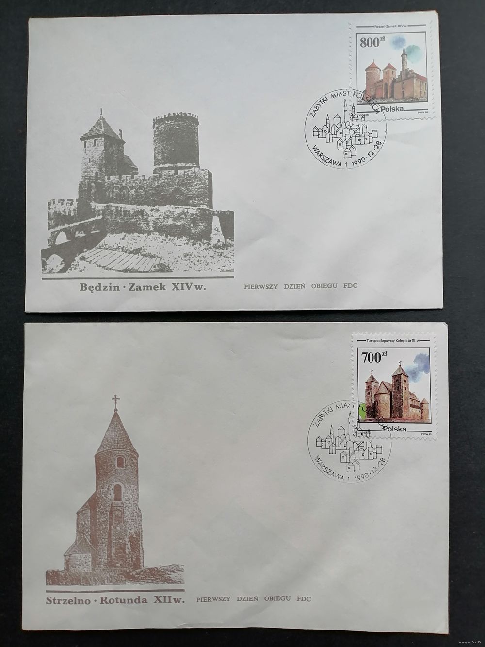 Польша 1990 Четыре КПД с полной серией марок "Исторические постройки Польши" (спецгашение) Mi.3302-3305 Zf каталог 2.00 евро