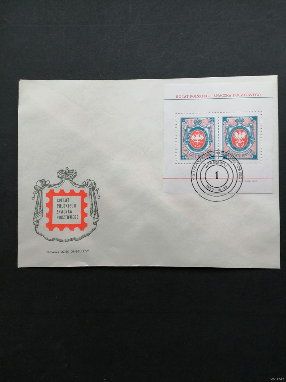 Польша 1990 КПД с блоком Mi.110 и двумя марками "130 лет польской почтовой марке" (спецгашение) Mi.3266х2 каталог 1.50 евро