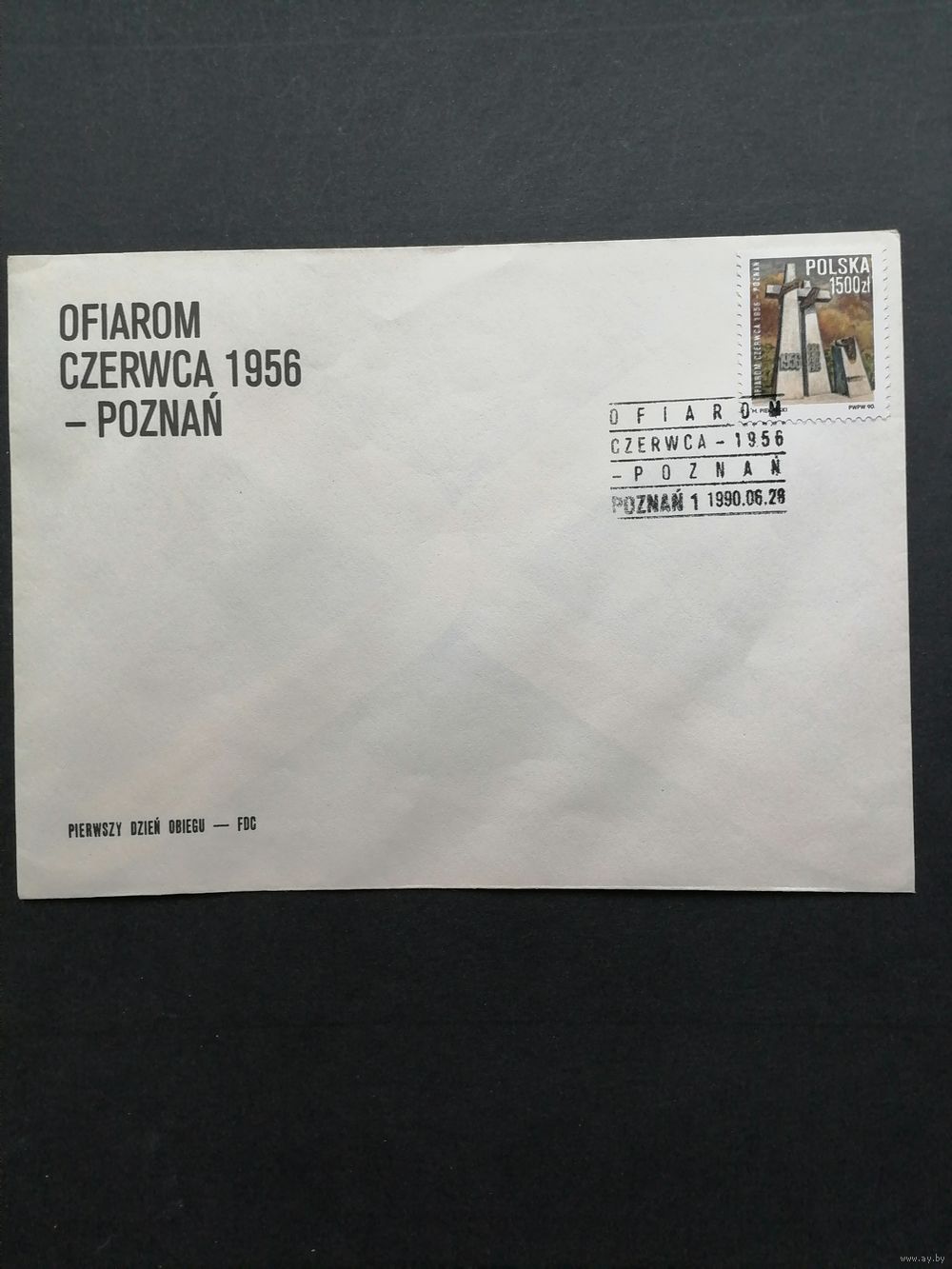 Польша 1990 КПД с маркой "34-летие июньского восстания в Познани (Pozen) и 14-летие июньской рабочей забастовки" (спецгашение) Mi.3270 каталог 0.70 евро