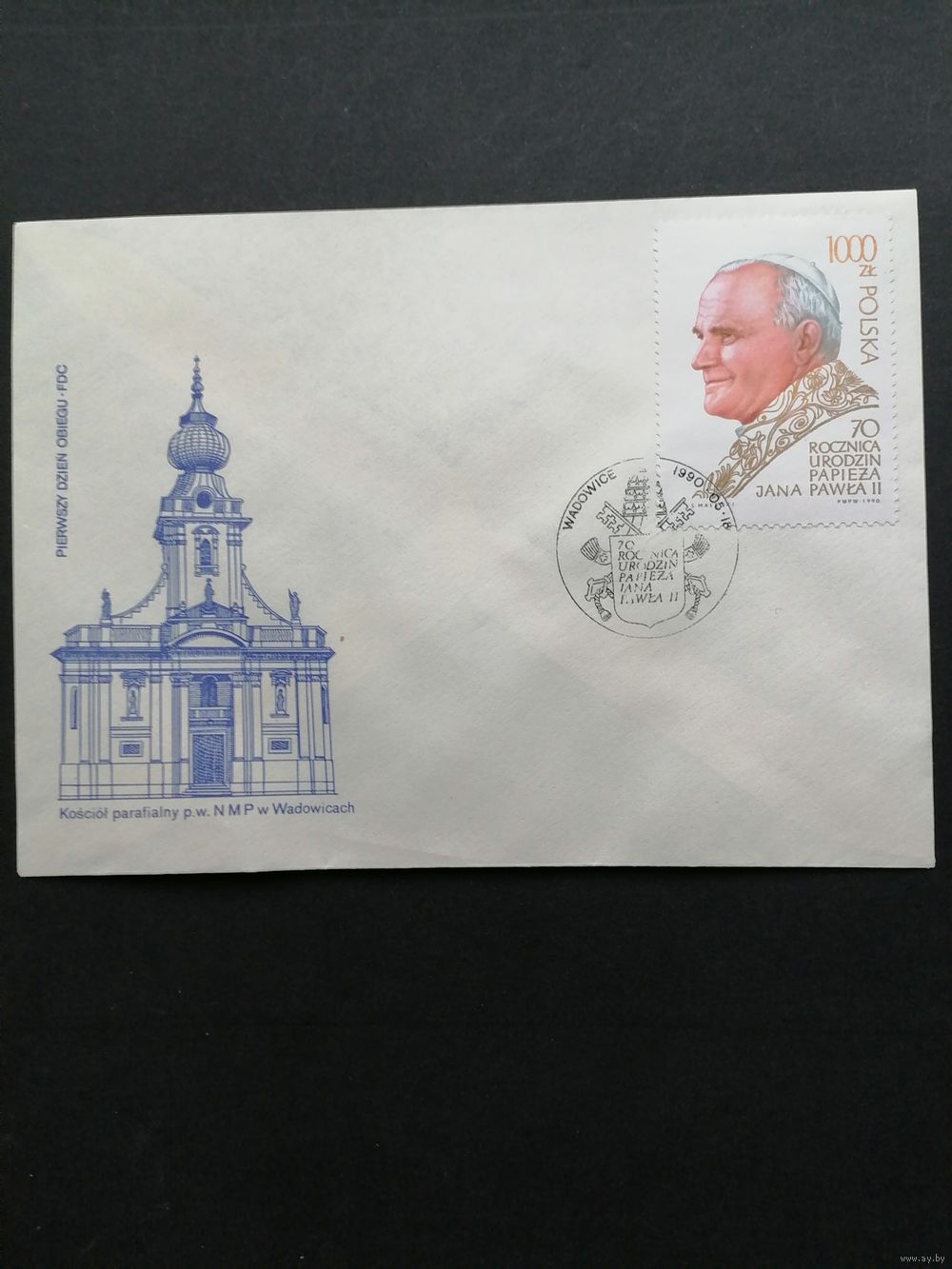 Польша 1990 КПД с маркой "70 лет со дня рождения Папы Римского Иоанна Павла II" (спецгашение) Mi.3265 каталог 0.50 евро