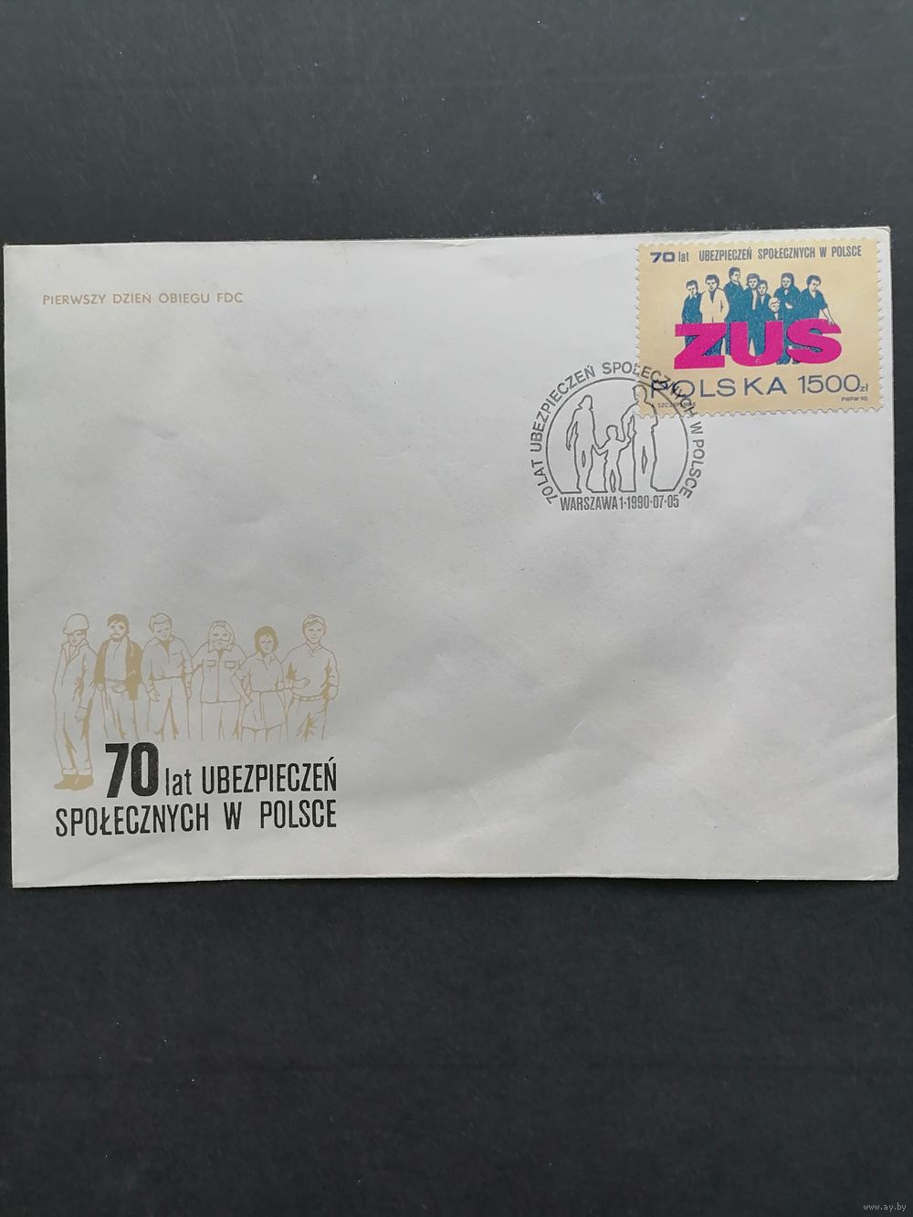 Польша 1990 КПД с маркой "70 лет социальному страхованию в Польше" (спецгашение) Mi.3271 каталог 0.70 евро