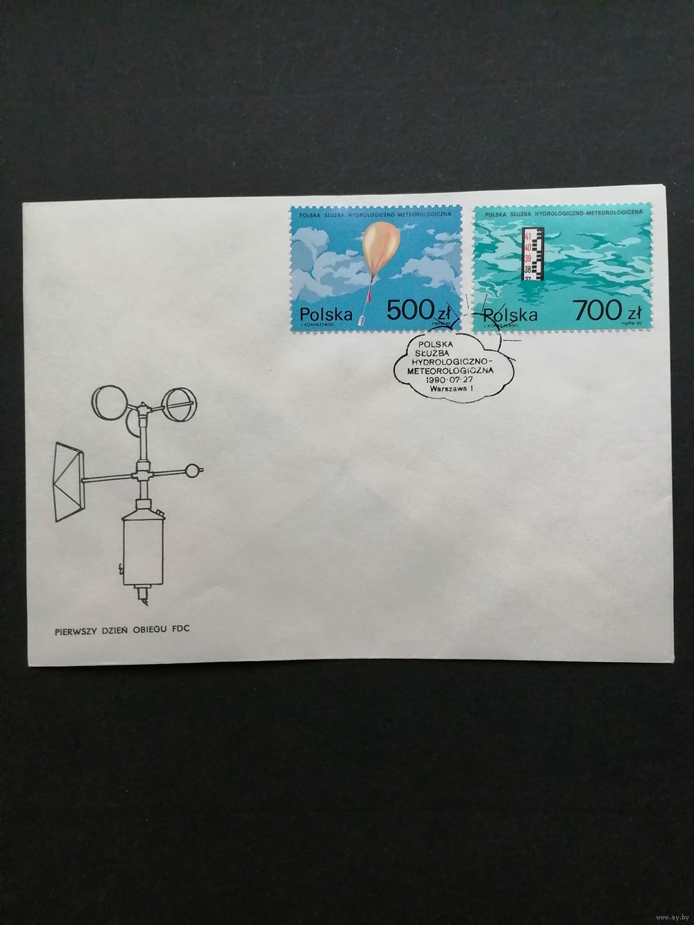 Польша 1990 КПД с полной серией марок "Польская гидрологическая и метеорологическая служба" (спецгашение) Mi.3275-3276 каталог 0.70 евро