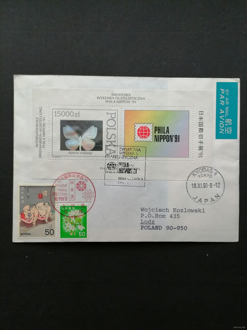 Польша 1991 Конверт блоком Mi.115 марка купон "Всемирная филателистическая выставка "PHILANIPPON-91" Токио. Собрание бабочек мира Польской академии наук" (спецгашение) Mi.3349 каталог 3.50 евро