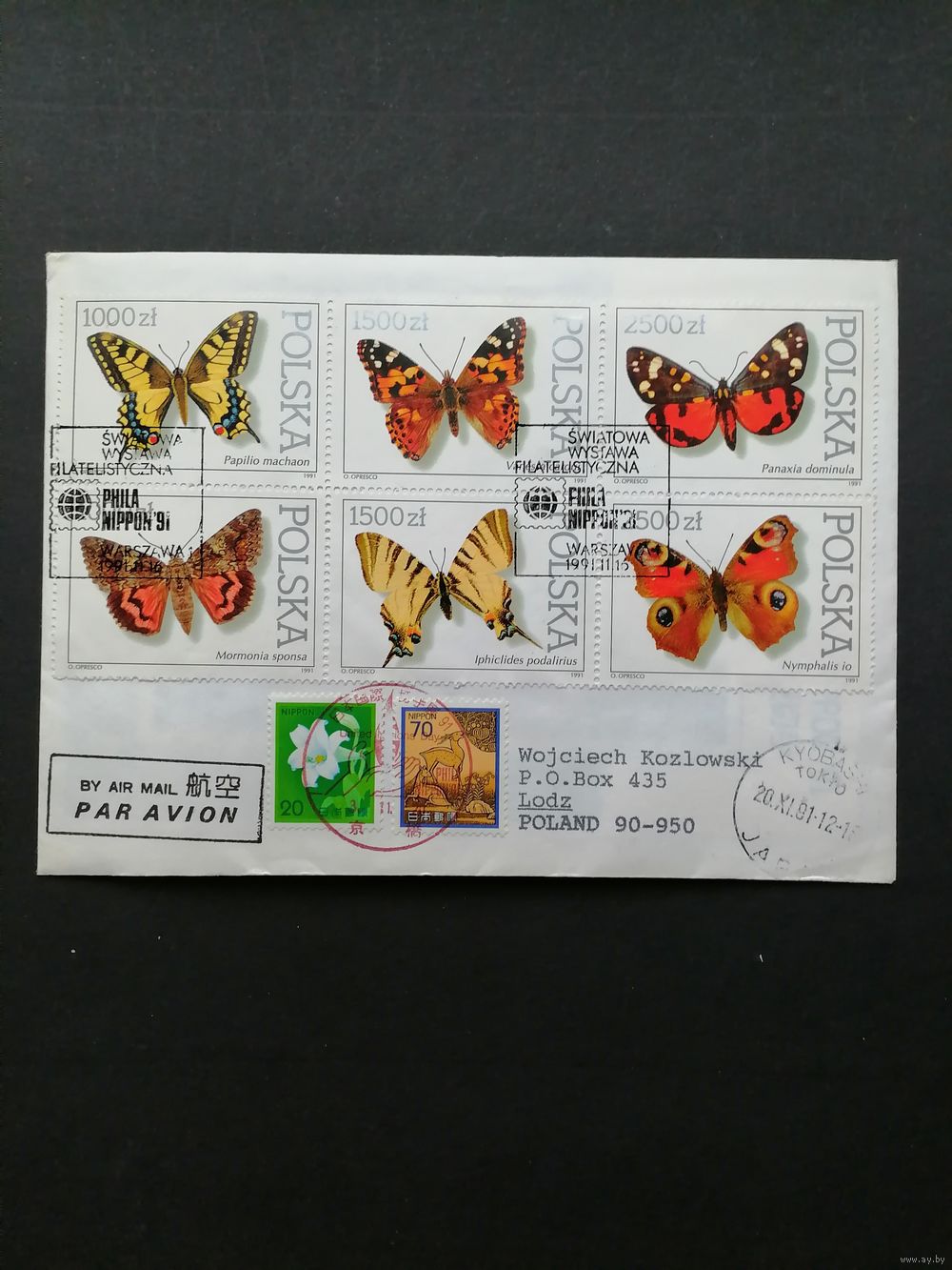Польша 1991 Конверт с полной серией марок "Всемирная филателистическая выставка "PHILANIPPON-91" в Токио. Собрание бабочек мира в Польской академии наук" (спецгашение) Mi.3343-3348 каталог 3.00 евро