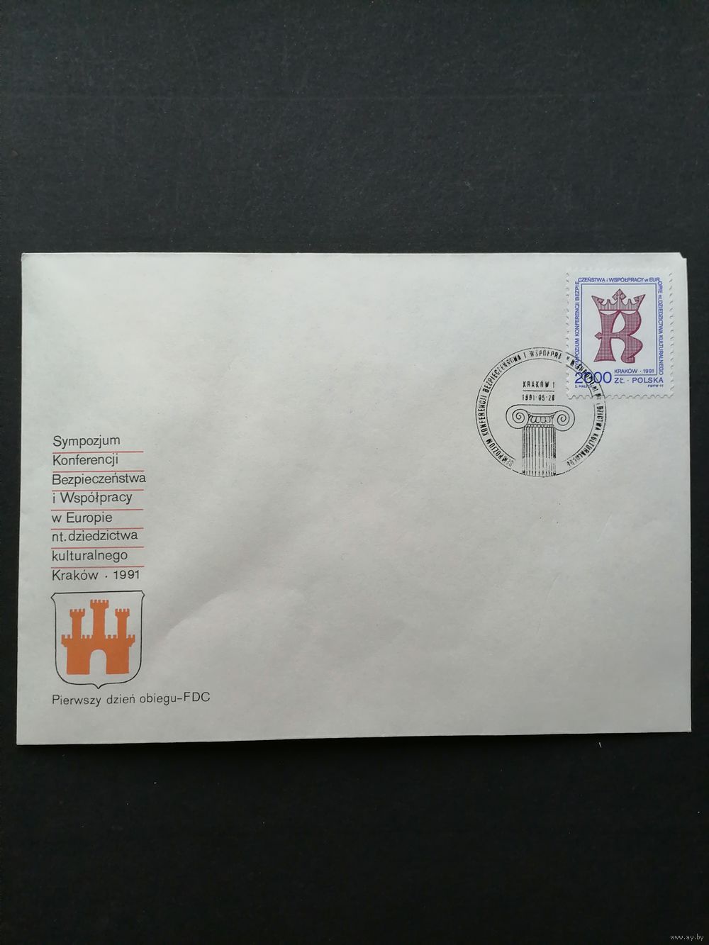 Польша 1991 КПД с маркой "Конференция KSZE по безопасности и сотрудничеству в Европе (Краков).Симпозиум по охране культурного наследия" (спецгашение) Mi.3333 каталог 2.00 евро