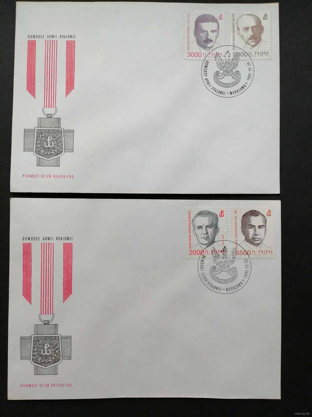 Польша 1991 Три КПД с полной серией марок "Командиры Армии Крайовой" (спецгашение) Mi.3352-3356 каталог 6.00 евро