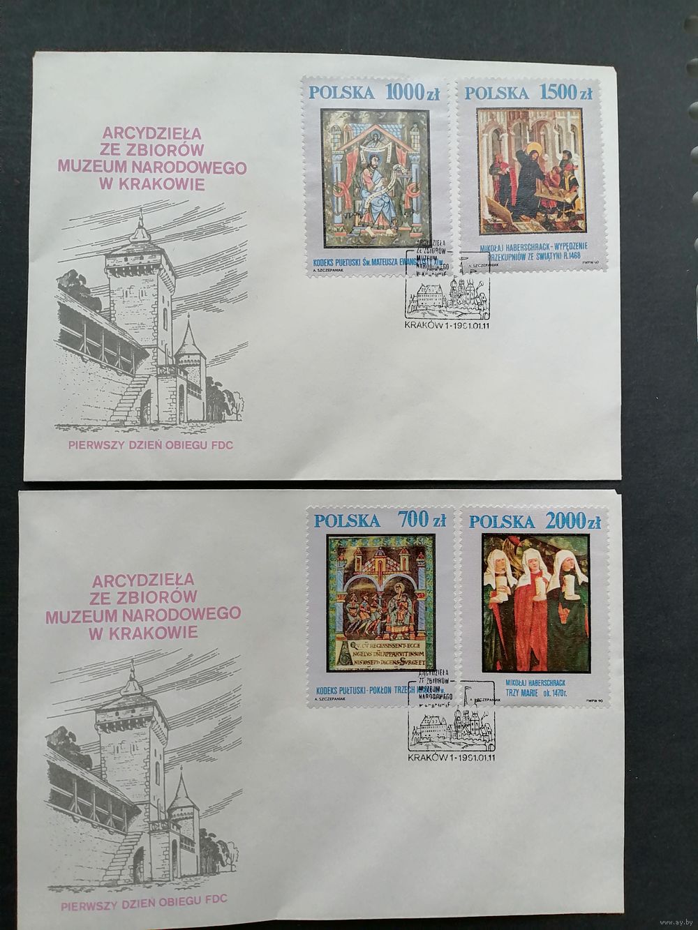 Польша 1991 Три КПД с полной серией марок "Работы мастеров в Национальном музее в Кракове" (спецгашение) Mi.3306-3311 каталог 3.00 евро
