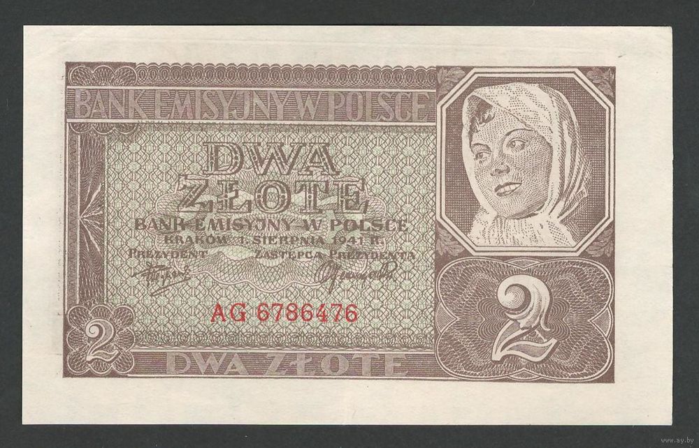 Польша 2 злотых 1941 года. Тип Р-92. Состояние aUNC