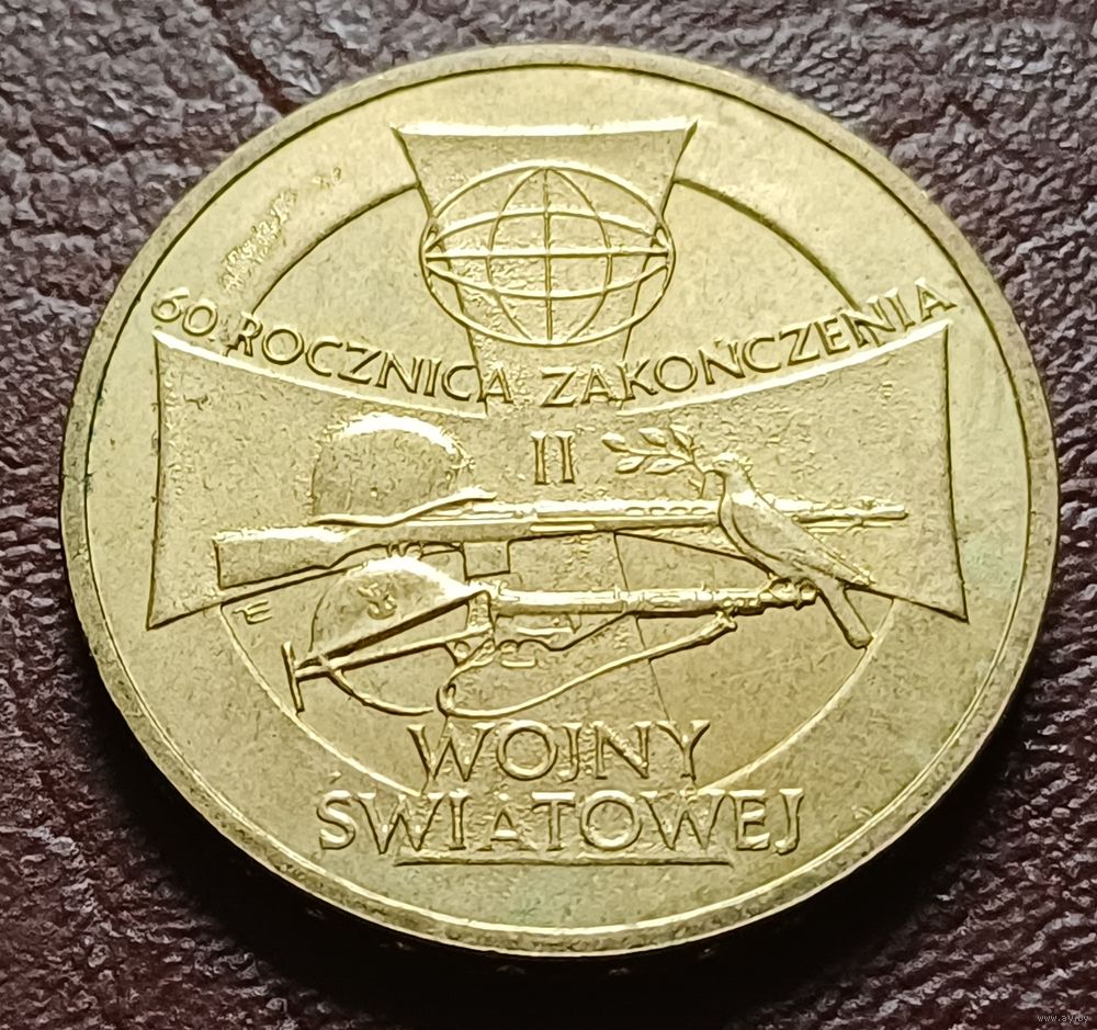 Польша 2 злотых, 2005 60 лет окончанию Второй мировой войны ( 2-10-3 )