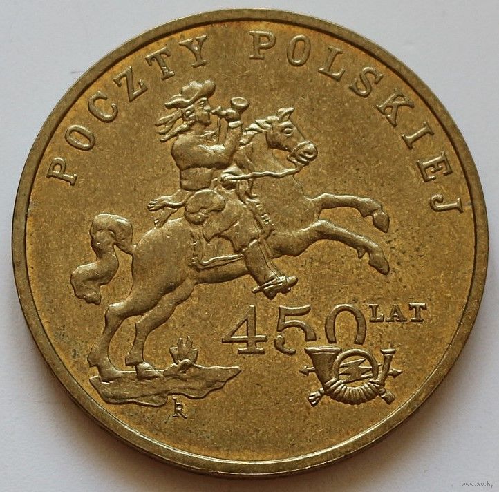 Польша 2 злотых 2008 год "450 лет польской почтовой службе"