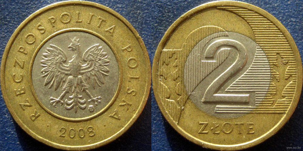Польша. 2 злотых 2008 года.