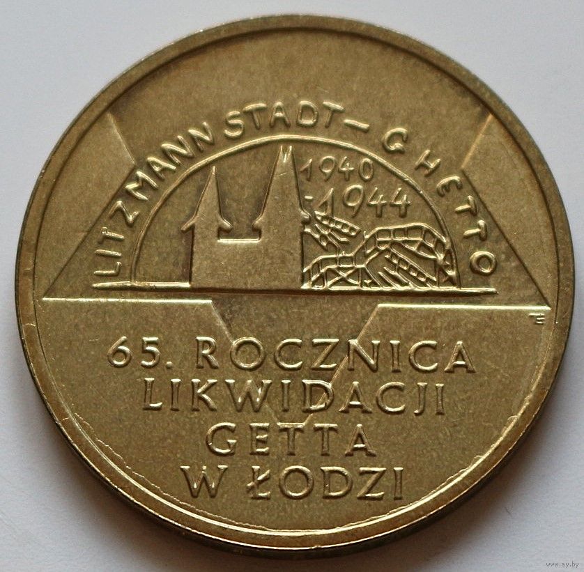 Польша 2 злотых 2009 год "65 лет ликвидации Лодзинского гетто"