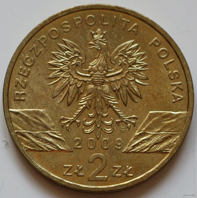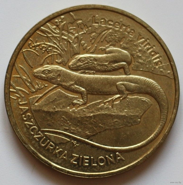 Польша 2 злотых 2009 год "Зелёная ящерица"