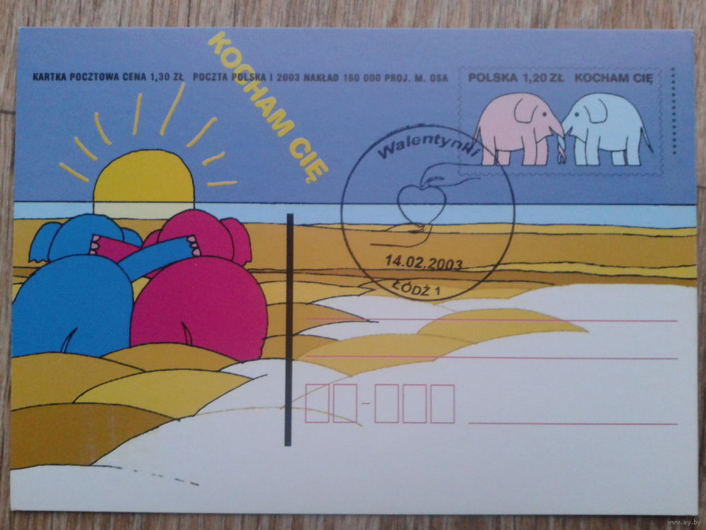 Польша 2003 ПК с ОМ + СГ Валентинов день, слоны
