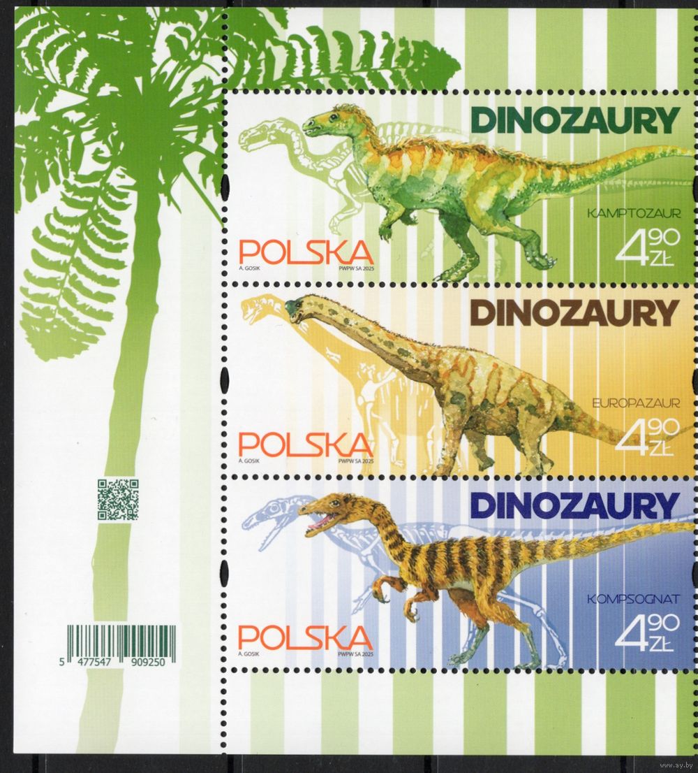 Польша 2025. Фауна. Динозавры 3 марки