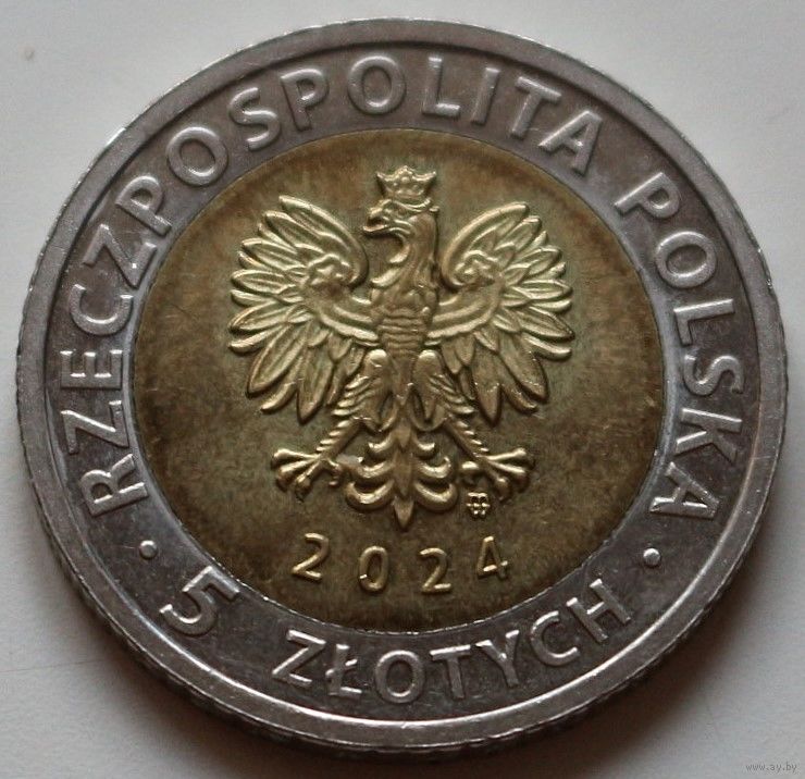 Польша 5 злотых 2024 год "Бенедиктинское аббатство в Тынеце"