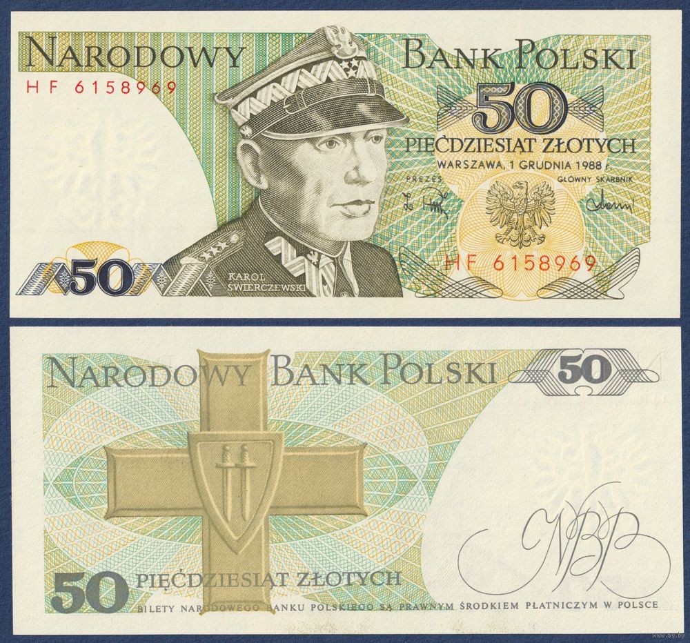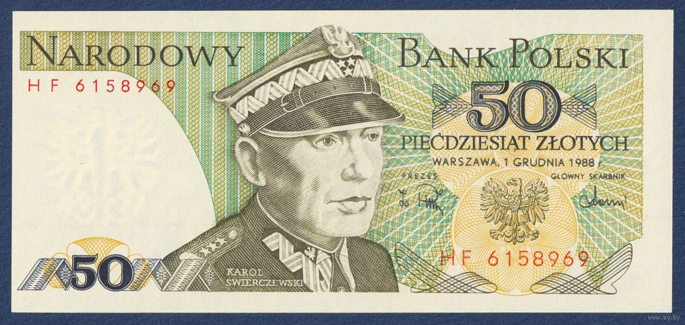 Польша, 50 злотых 1988 г, P-142c (HF, генерал Кароль Сверчевский), UNC
