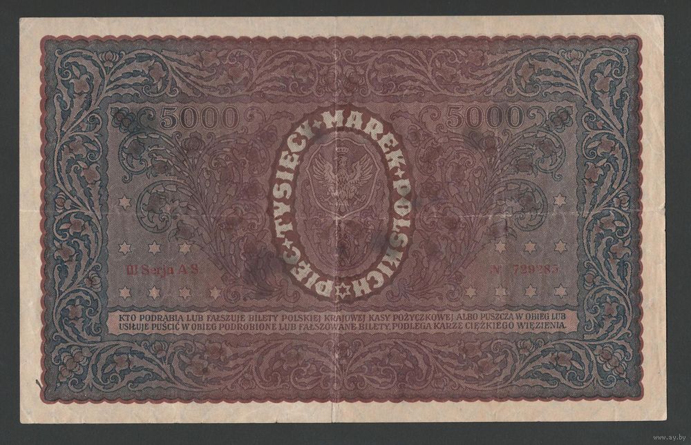 Польша 5000 марок 1919 года. Серия III AS. Тип P-31(2). Состояние XF-