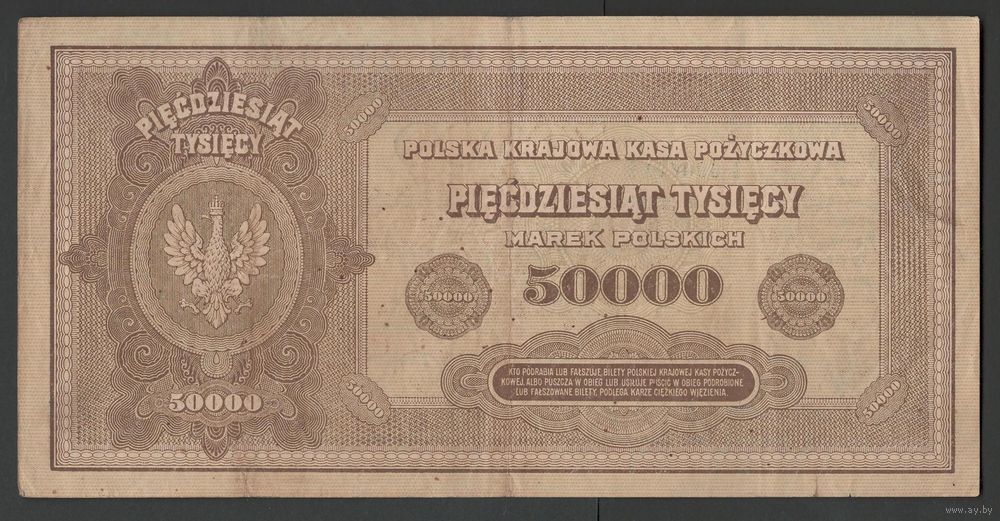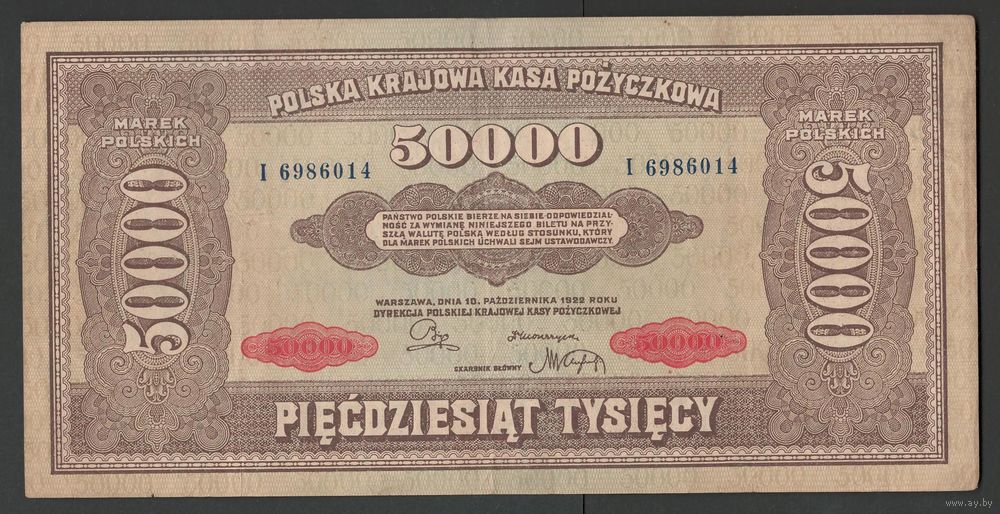 Польша 50000 злотых 1922 года. Тип Р-33. Состояние XF