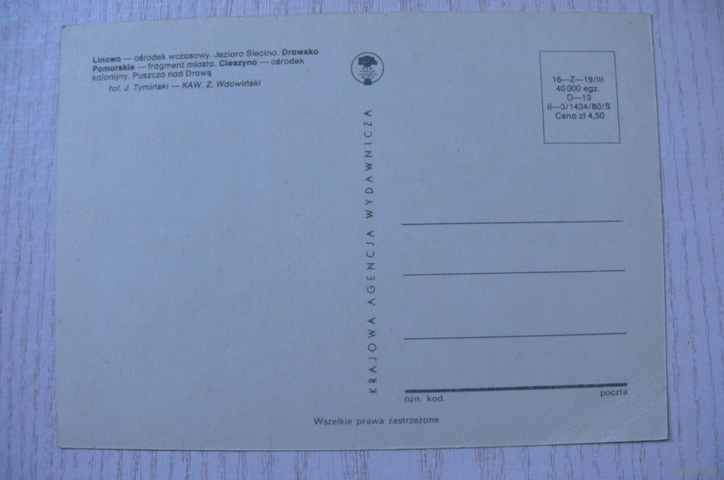 Польша. Линово. Дравско-Поморске; 1980, чистая.