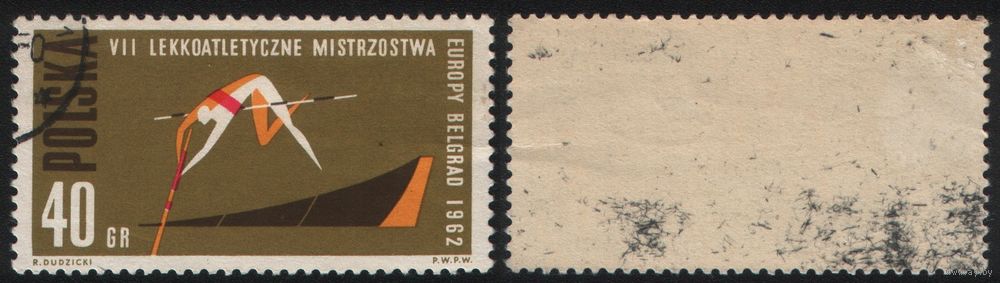 Польша (Mi)PL1338A (VII чемпионат Европы по легкой атлетике в Белграде) 1962 год 40 грош Прыжки с шестом (CTO) (a1-02 ТОРГ/ВАША ЦЕНА