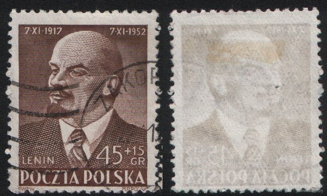 Польша (Mi)PL782 почтово-благотворительная 45+15 грош 1952 год сер.(-) - Ленин (CTO) (a1-01 ТОРГ/ВАША ЦЕНА